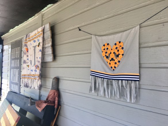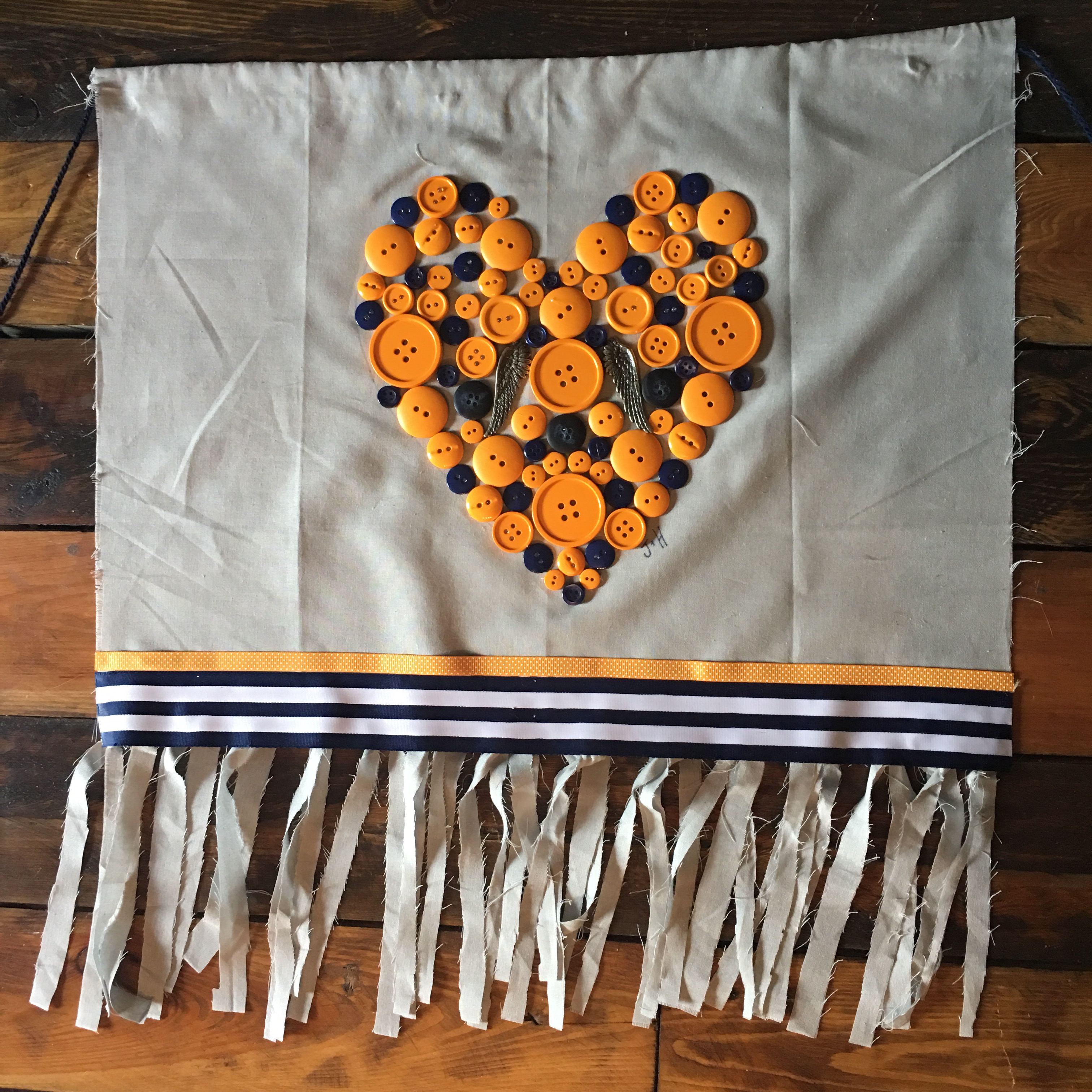 I could go for the literal translation here and say I’m wearing my heart on my flag, but I promise there’s a little more meaning here. The heart is made of a ton of little buttons (sadly, I didn’t count them to give you an exact number), this resembles the pieces of my broken heart. In the same sense, they are all together, which resembles my healing process and the hope to keep waking up and doing my best every morning.