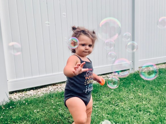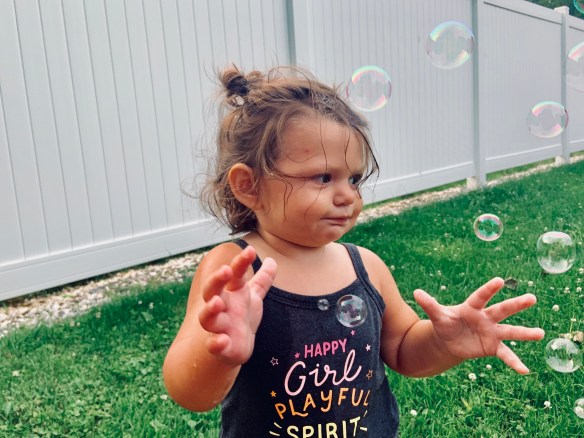 One day she’ll think blowing bubbles and hanging out with me is lame. She won’t be as surprised or intrigued in these little wonders. They grow up so fast and the world doesn’t let them stay young for long.