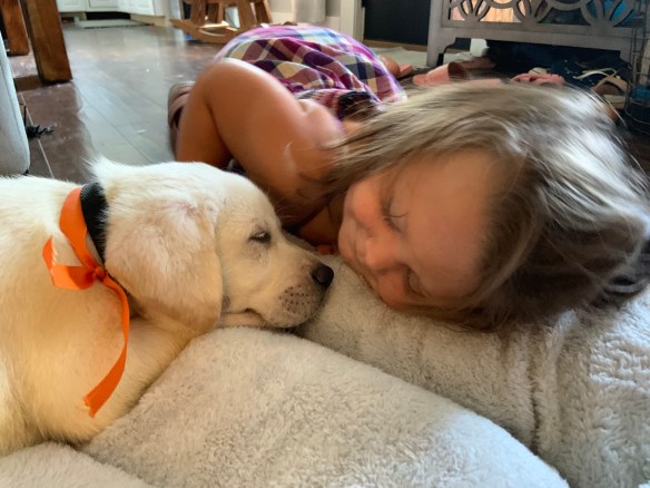 Everyone, meet Max! He’s an Old English Yellow Lab. He’s super good with Mila and follows her around. Comes and gives me kisses when I pat on the ground. Last night he did amazing in his crate, but was super happy when it was time to start the day. Potty training a puppy and starting to notice Mila being ready to start is going to be a challenge, but I’m happy with our little family.