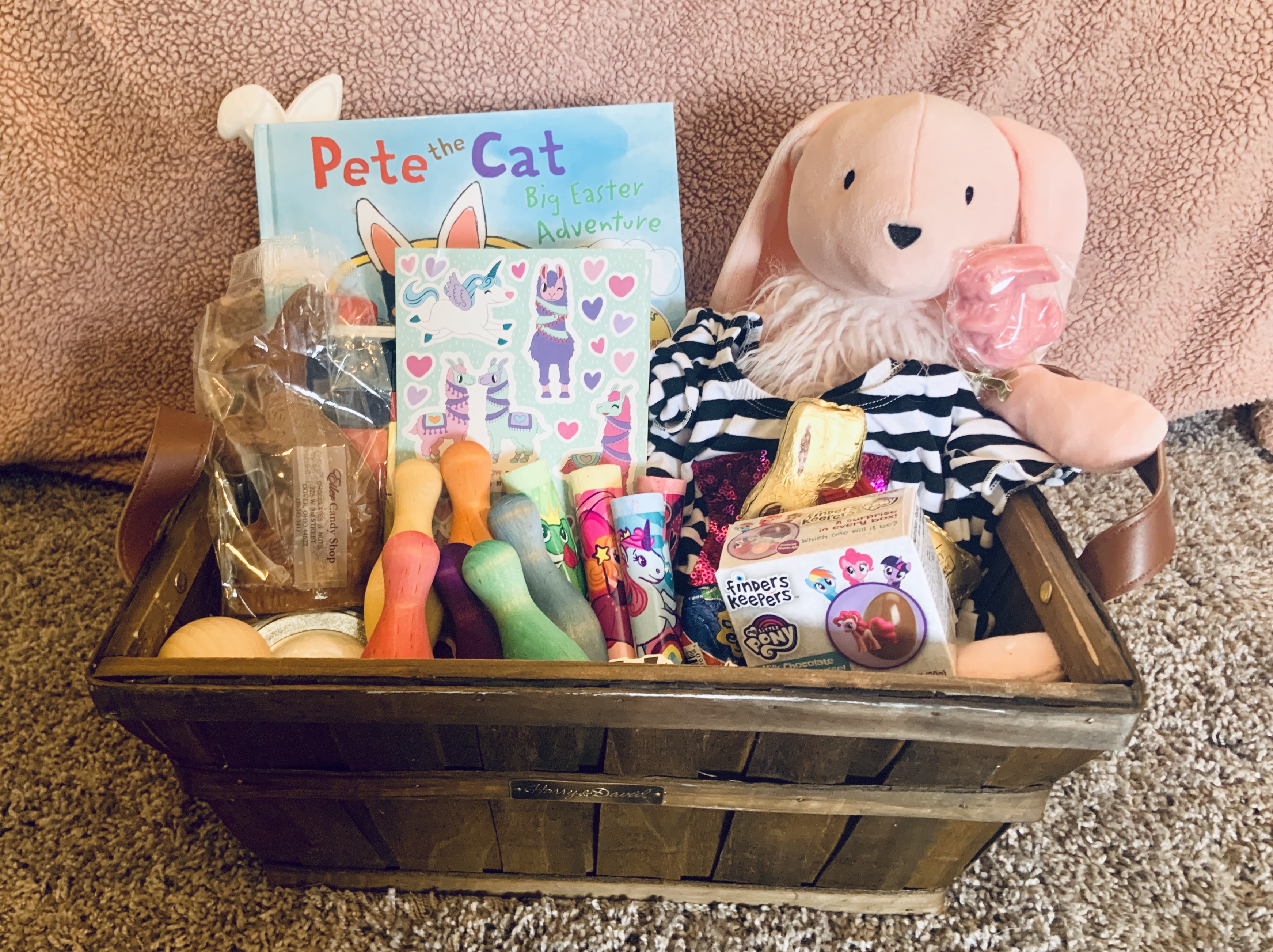 Easter is tomorrow and since Mila is napping (finally today), I decided to put together her Easter basket and share it with everyone! I might have went a little overboard this year… I’m blaming it on her birthday and Easter being so close together AND I went to this new (to me) store in a nearby town that I went overboard in.*