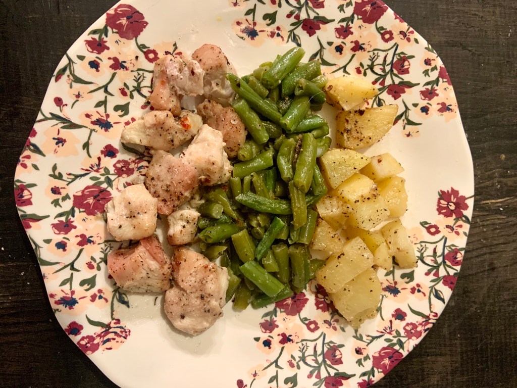 I know I say this with almost all my recipes, but this is truly an easy recipe. This Italian chicken dinner recipe comes with potatoes, green beans, and a lot of Italian seasoning.