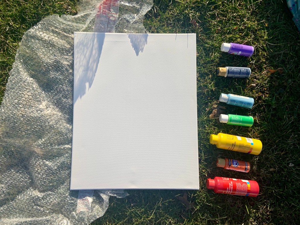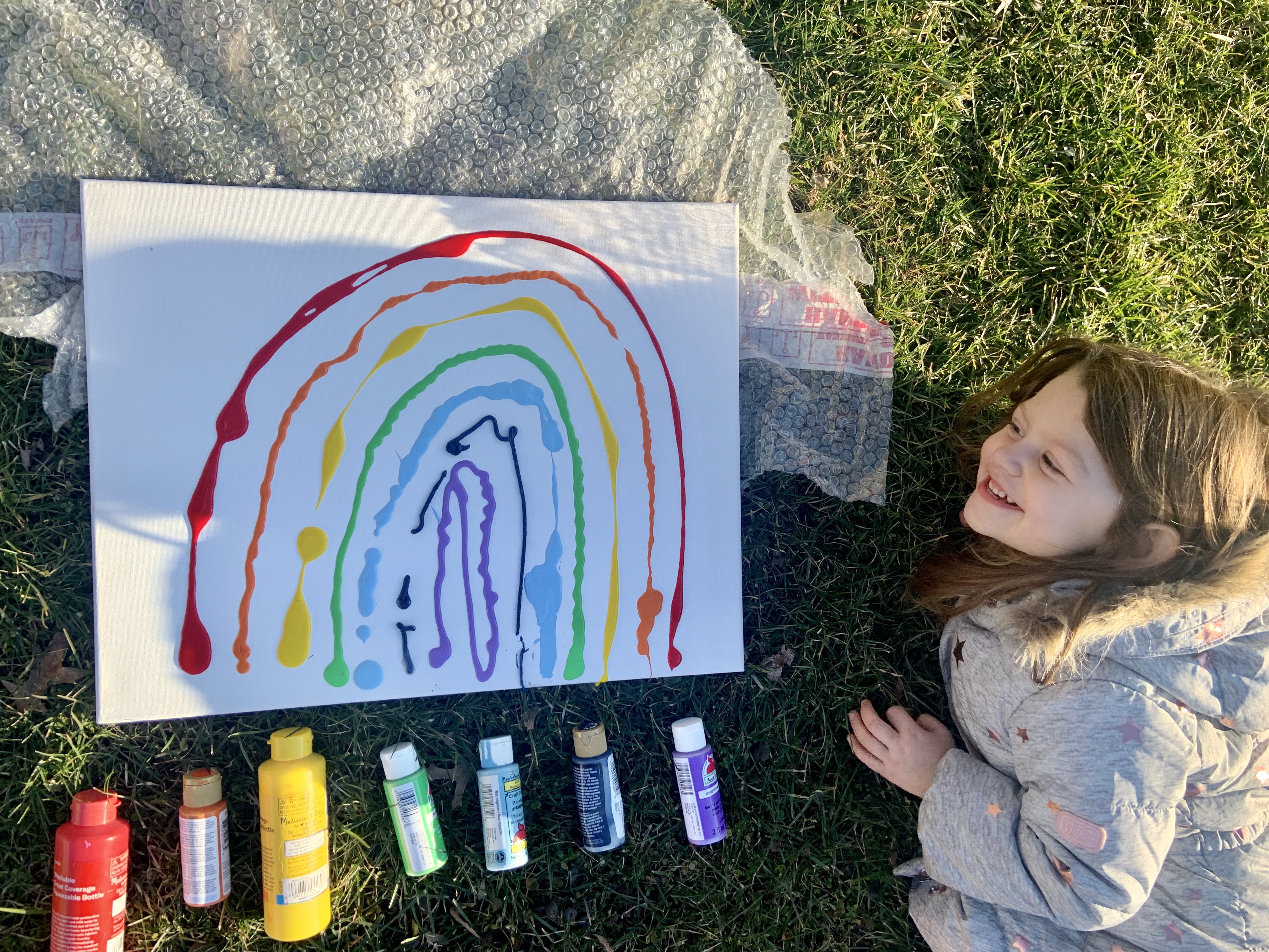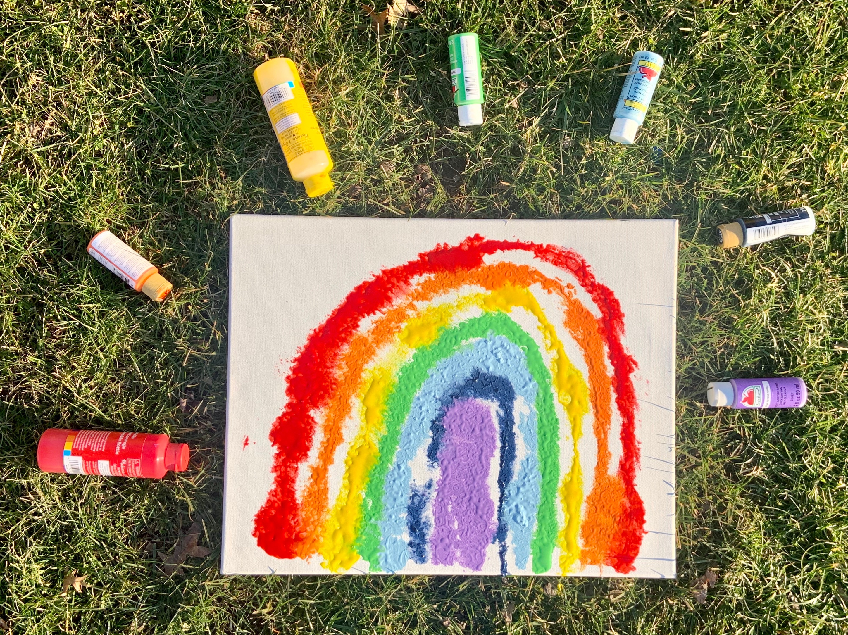 Mila is my rainbow baby and any time we can incorporate them in our home, we do. So, it felt pretty fitting to make our big canvas painting a rainbow this month.