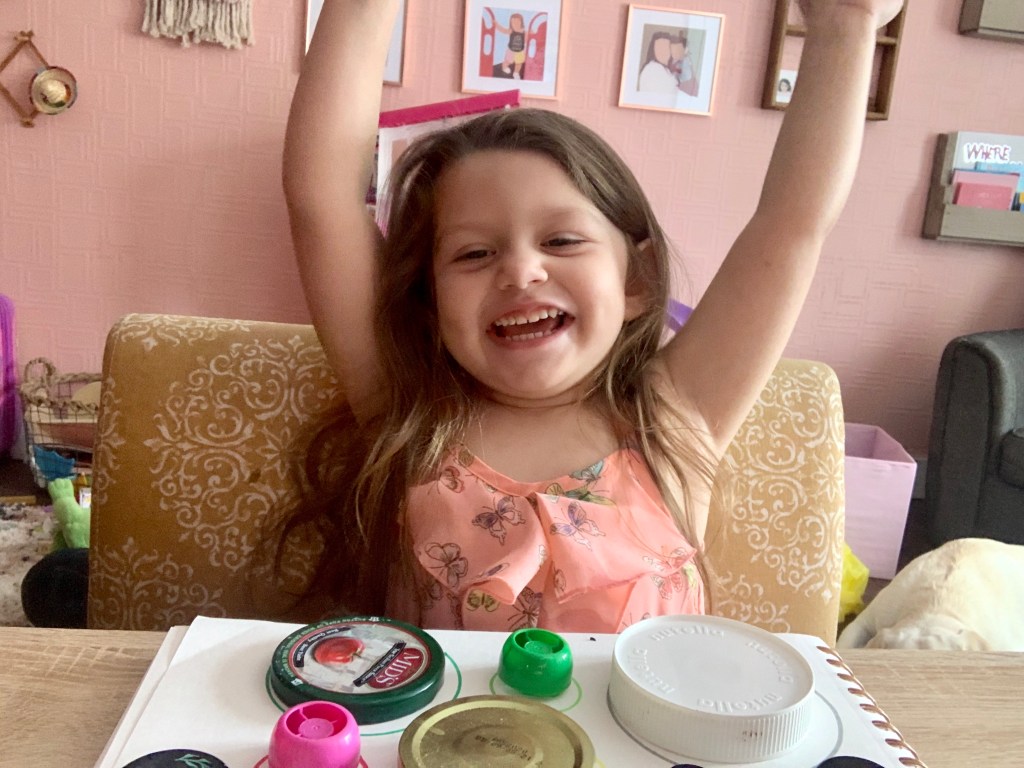 All you’ll need to make this matching game is a piece of paper, markers, and random lids.