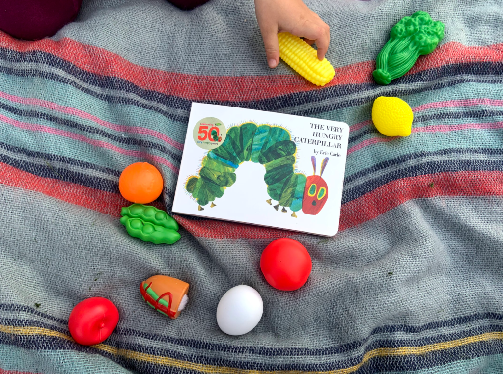 The best ways for anyone to learn is by reading. “The Very Hungry Caterpillar” by Eric Carle is in Mila’s top ten favorite. She loves seeing him transform into the butterfly and counting all the food he eats!