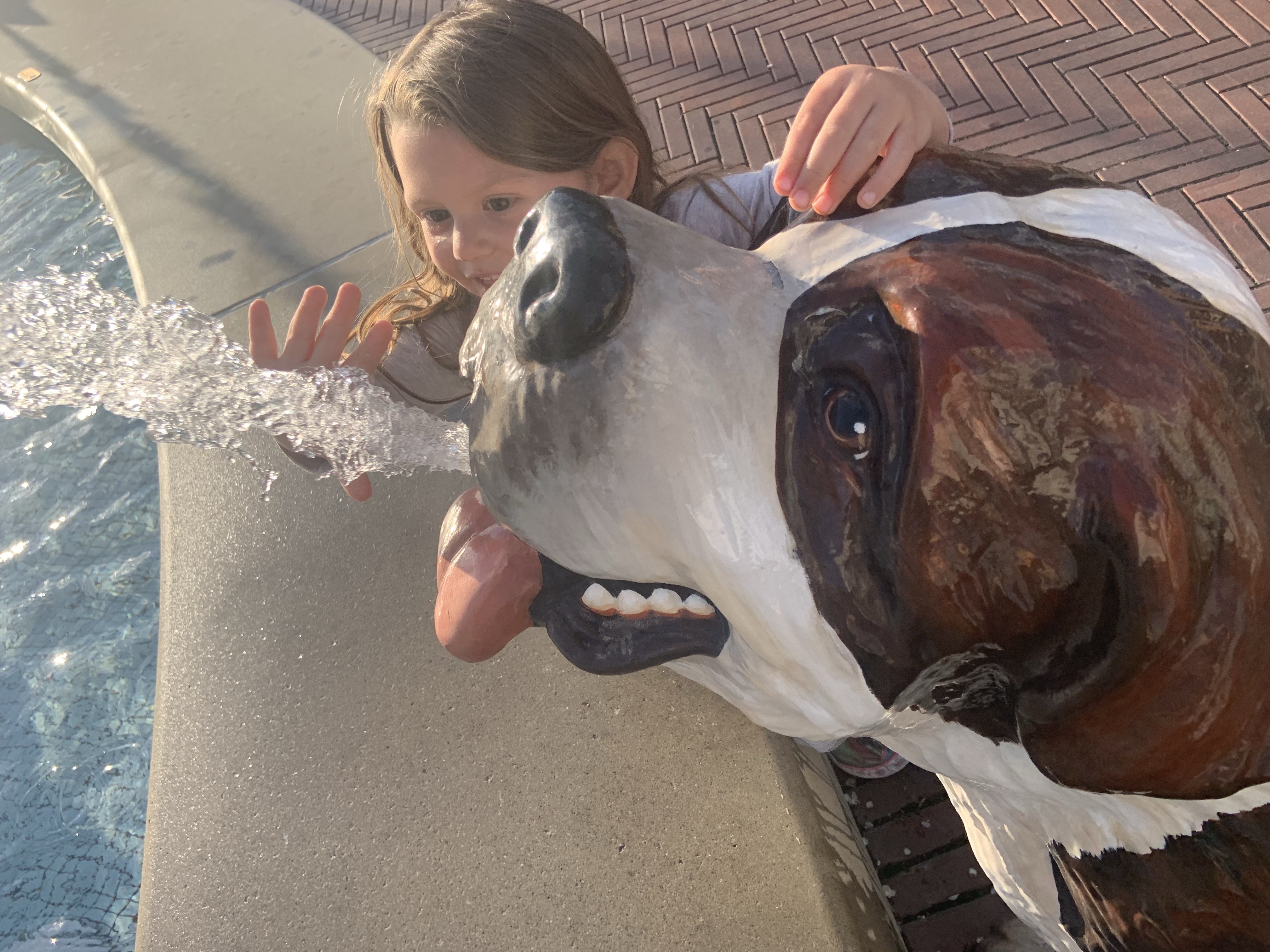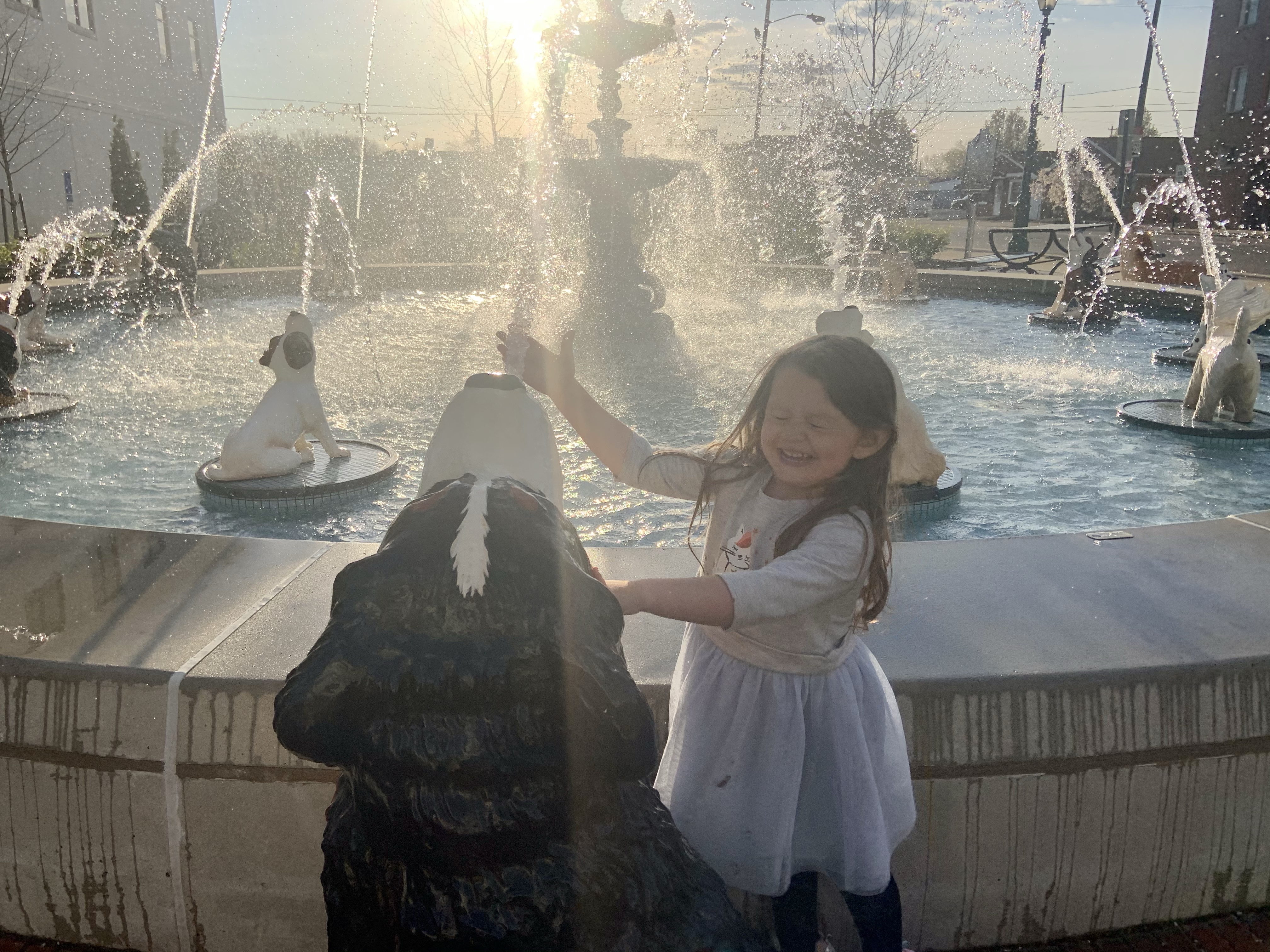 We were in town visiting a plant store and after looking for a place to eat. It was quite eye catching to drive by this… playful fountain. I was surprised Mila didn’t see it.