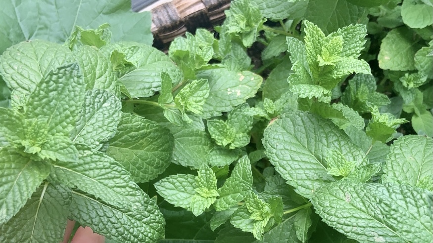 My little garden smells so good, but it’s a lot of mint. I cut off two stems. They gave me the perfect amount of leaves and there’s still a ton of mint left.