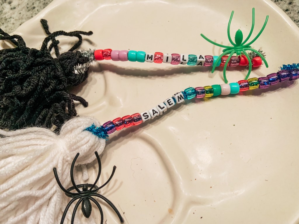 Out of all the easy activities, this was one with a little more prep. All I used was pipe cleaners and yarn to make the broom. If you only have a couple to make, it doesn’t take that long!