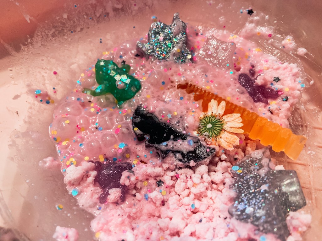 One thing I want to try to make it a little more special is grinding up one of her bath bombs too. I think it would give off more bubbles.