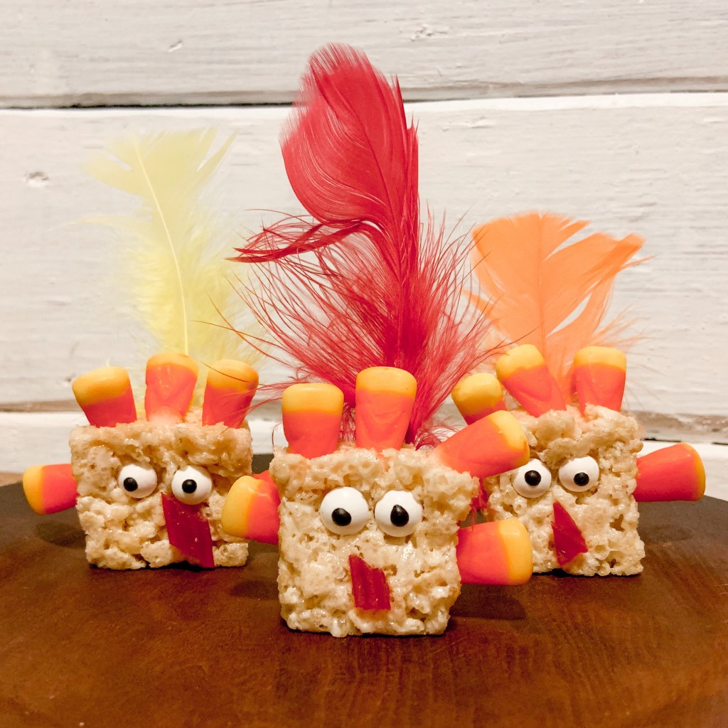 The holiday season goes so quick! I’ve been thinking of Thanksgiving Treats and how to make them festive. Eventually, I came up with these Rice Krispie Turkeys.