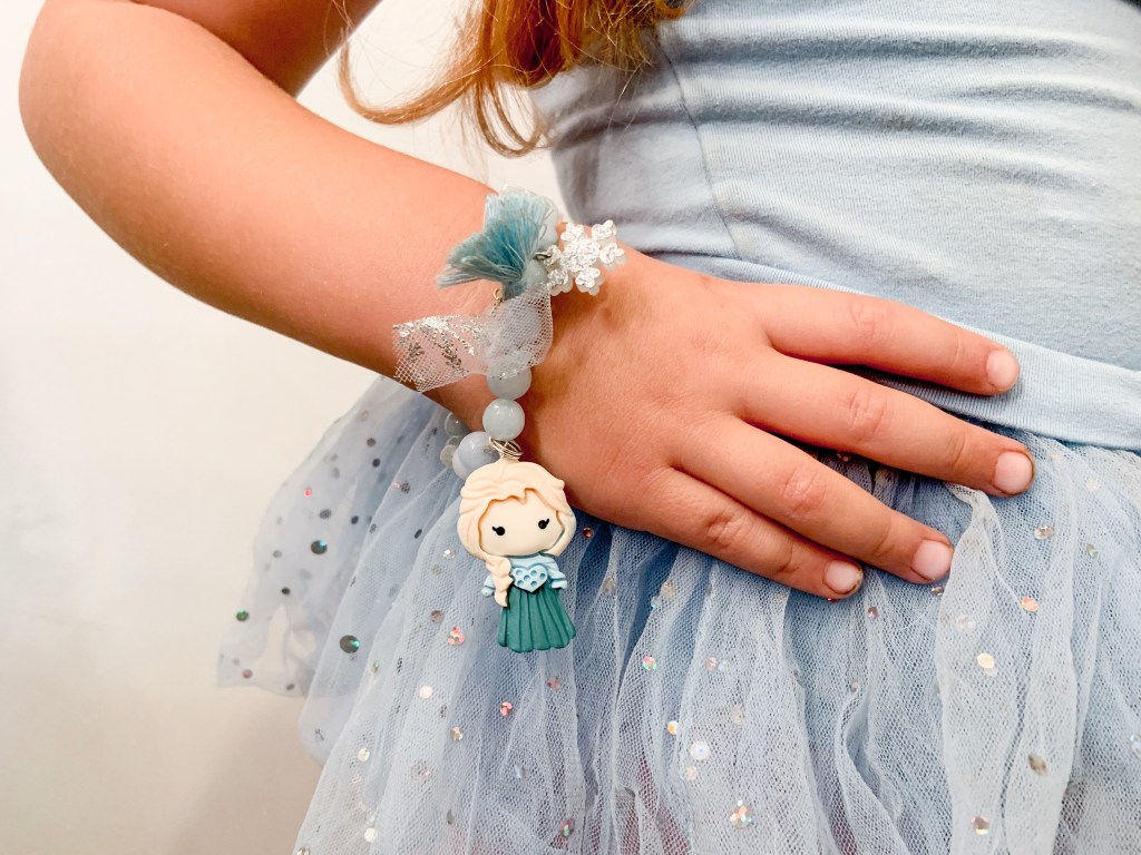 She has the most adorable bracelets and necklaces for any time of the year, seasonal ones, and PRINCESS ones. We are obsessed with the princess ones right now!