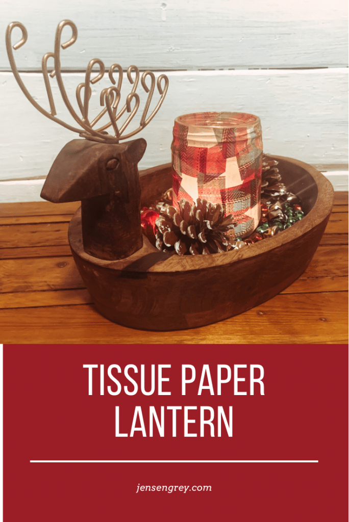 We love fun traditions in our house. Any time I can be transformed back into childhood, I’m all for it. Especially when I get to pass it on to Mila. One of my favorites crafts in elementary school were Tissue Paper Lanterns, so we made a Christmas themed one.