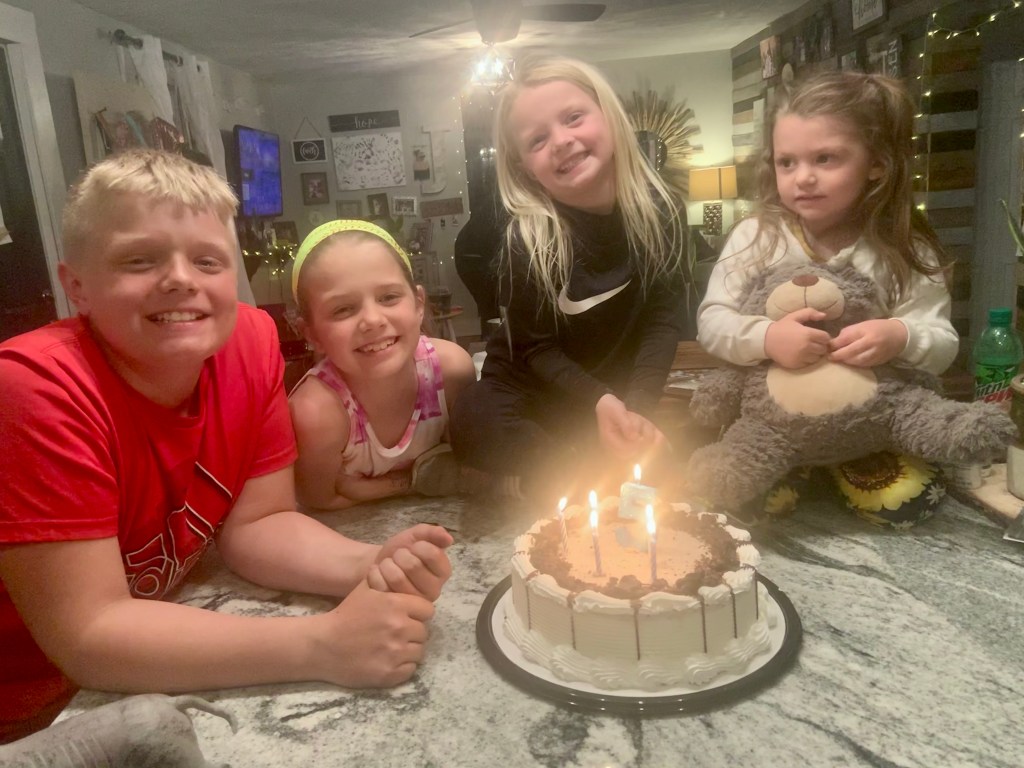 - She’s going to miss being four, but is happy to make a new growth mark on the doorway trim.