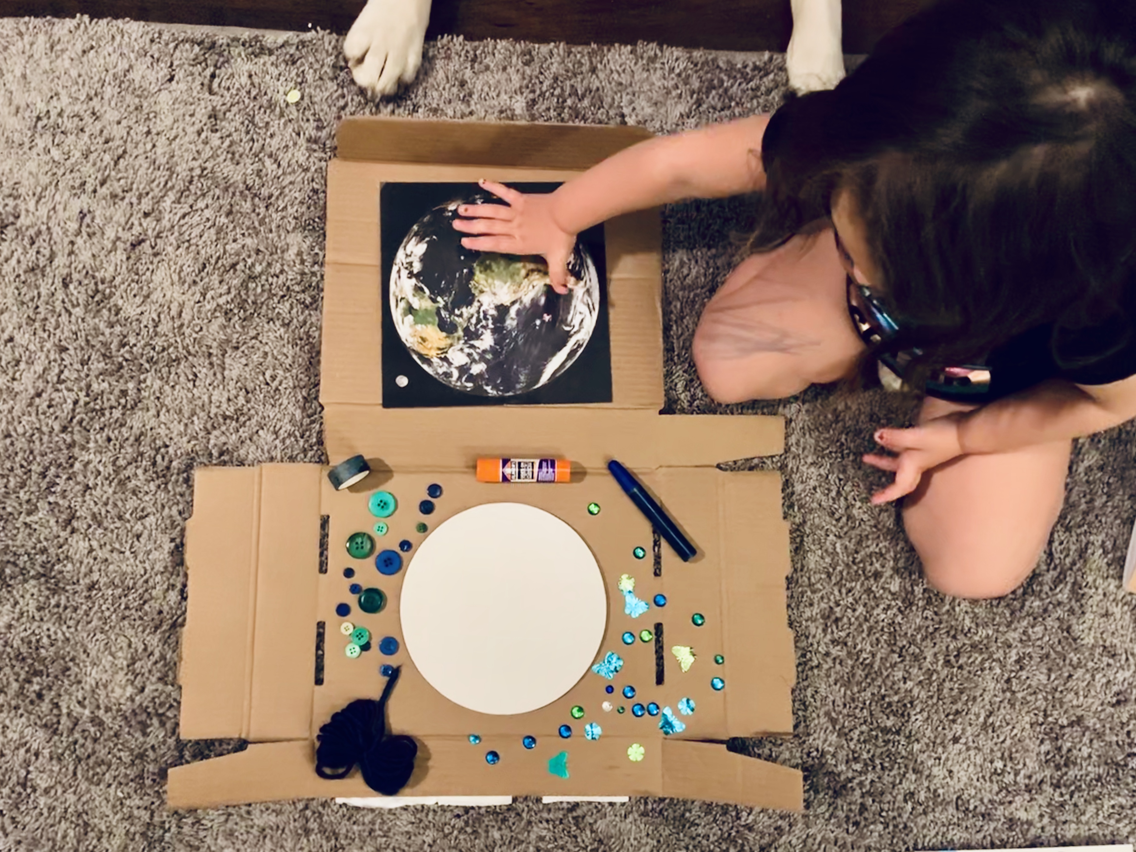 Our little earth doesn’t have a home yet, the glitter glue is still drying… she ended up using the whole tube. She’s all girl and loves her glitter. I’m thinking of putting all our Earth Week crafts where I usually have garland. When Mila sees her art hanging, she always points to it and shows it off when people visit. It’ll be adorable to see all of her different interpretations.