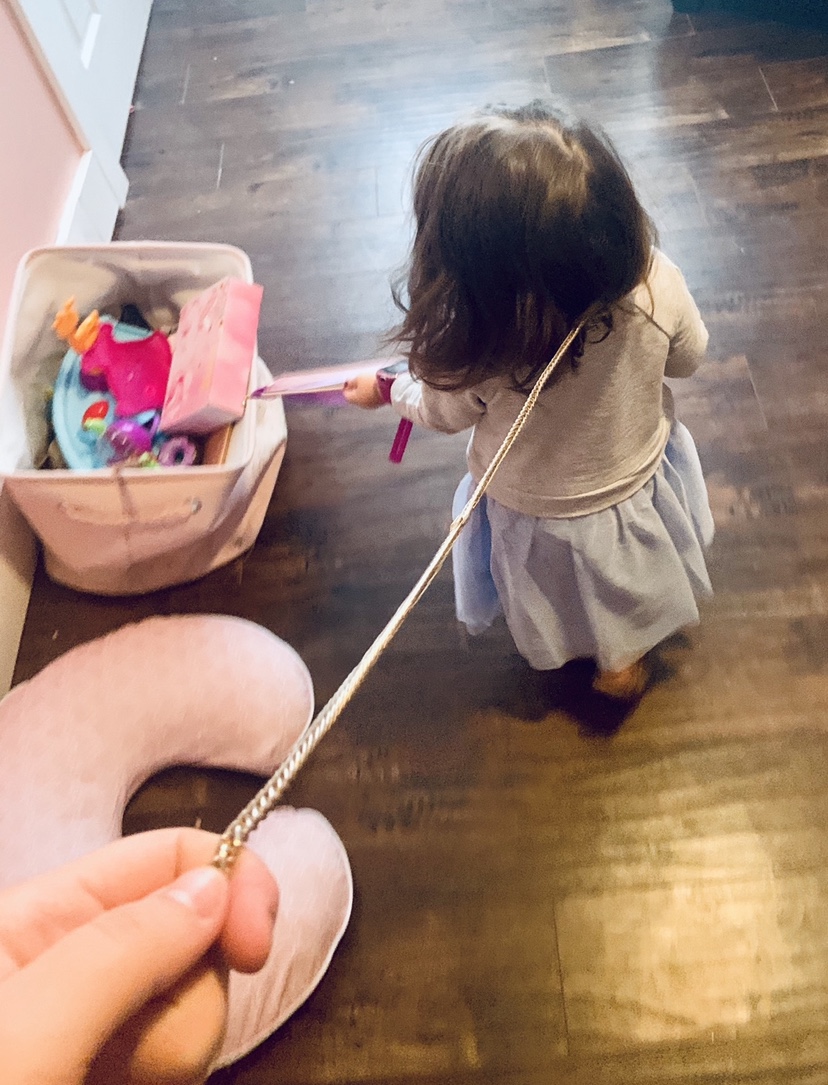 She took off a chain from one of my purses so I can ‘walk’ her around the house…