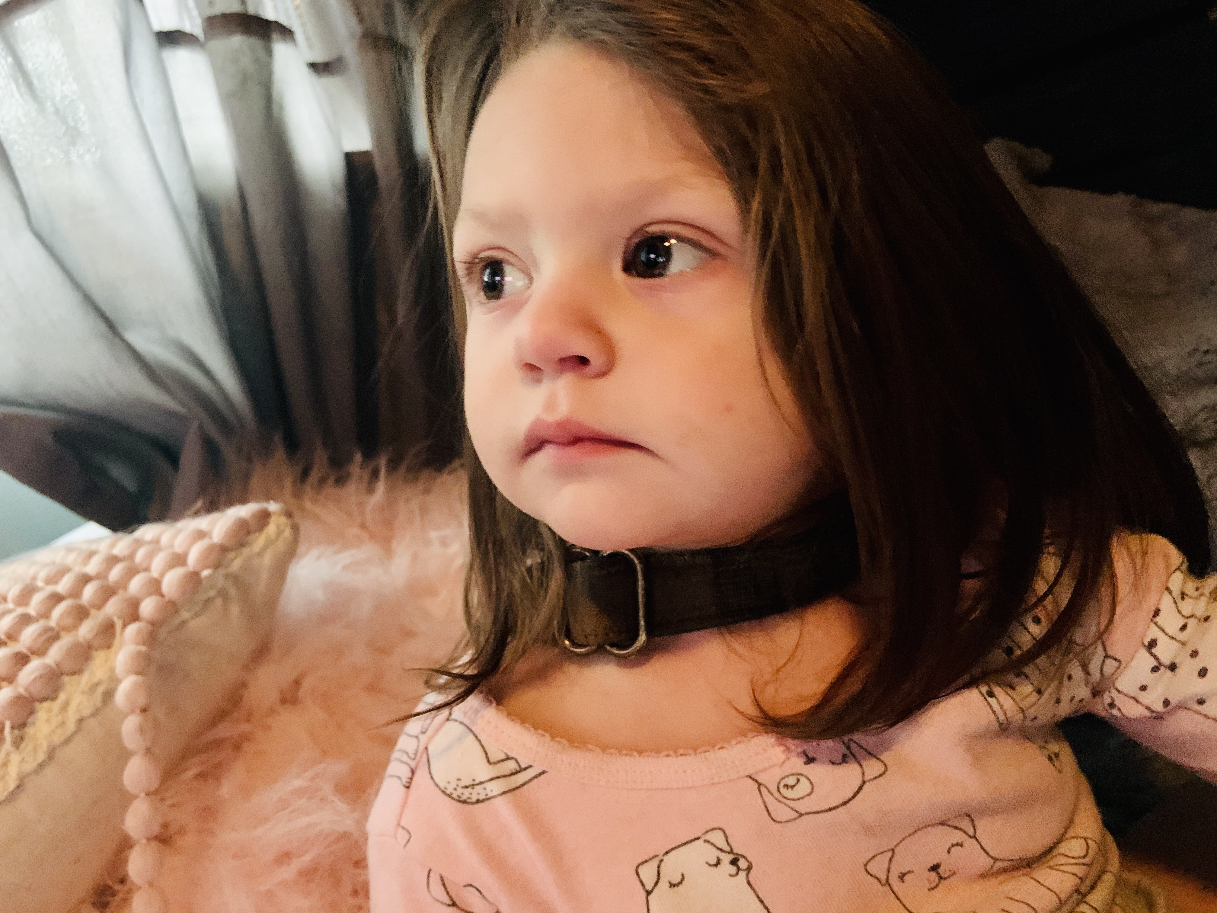 The leash thing was weird, but then today, she stole Max’s collar. I’m unsure how she took it off of him, but it now is nestled around her neck and she refuses to take it off.