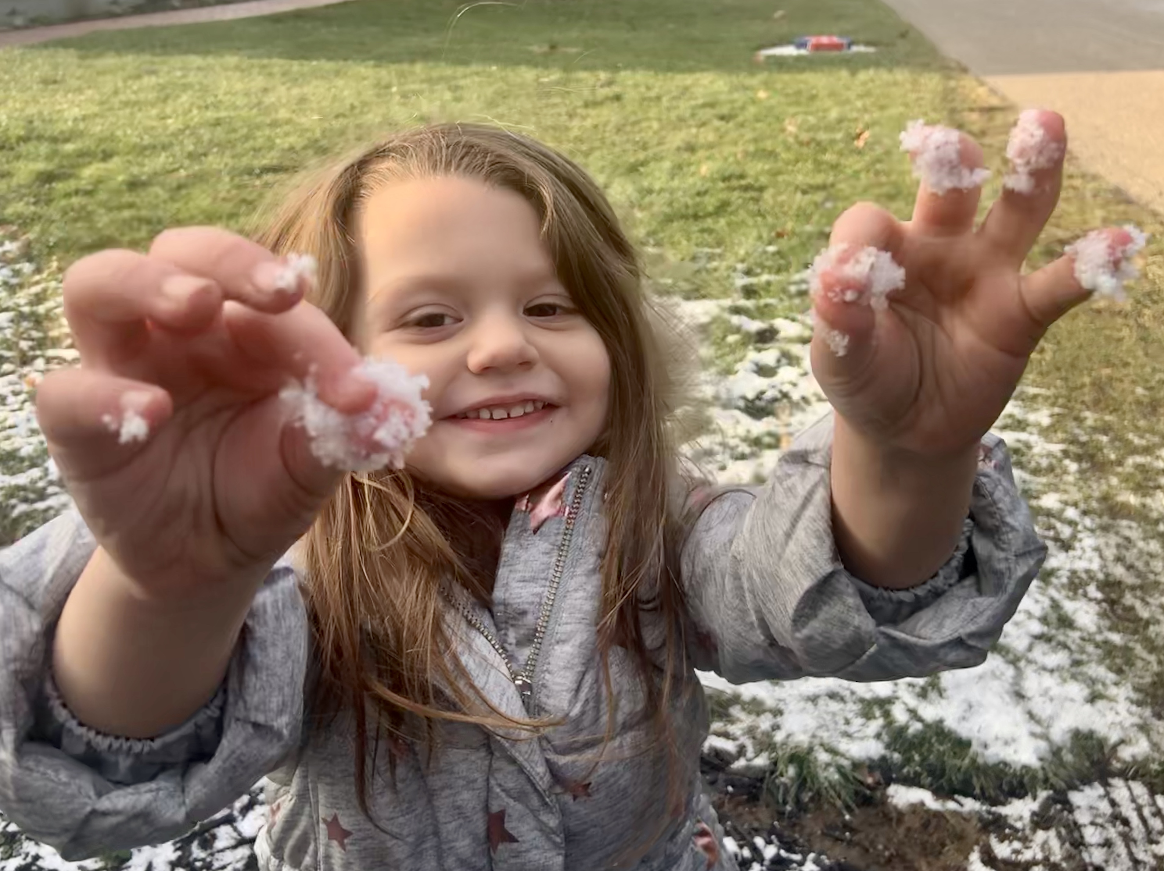 Like most kids, Mila likes to eat snow. She’ll get a handful, says something, and then eats it.