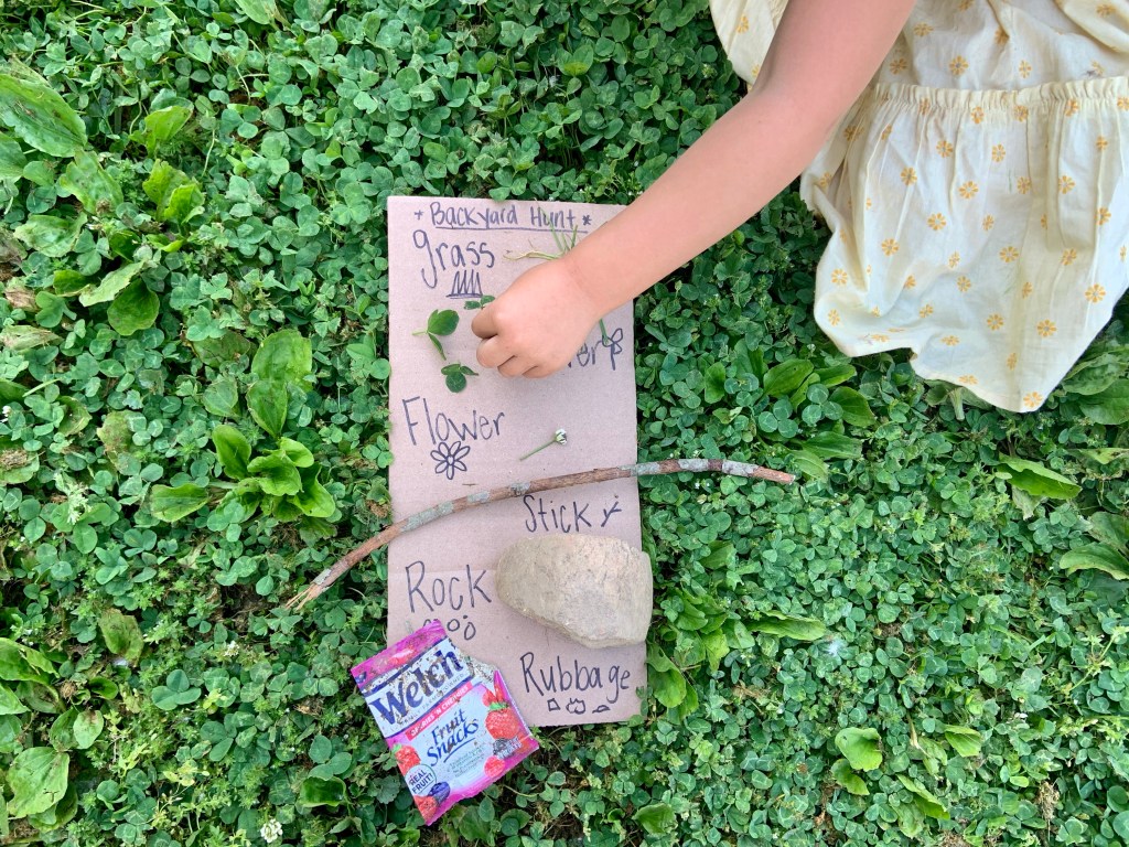 Being outside is a staple in Mila and I’s life. Everyday, we explore our backyard and the world around us. To keep the fun going, we love to do mini backyard scavenger hunts.