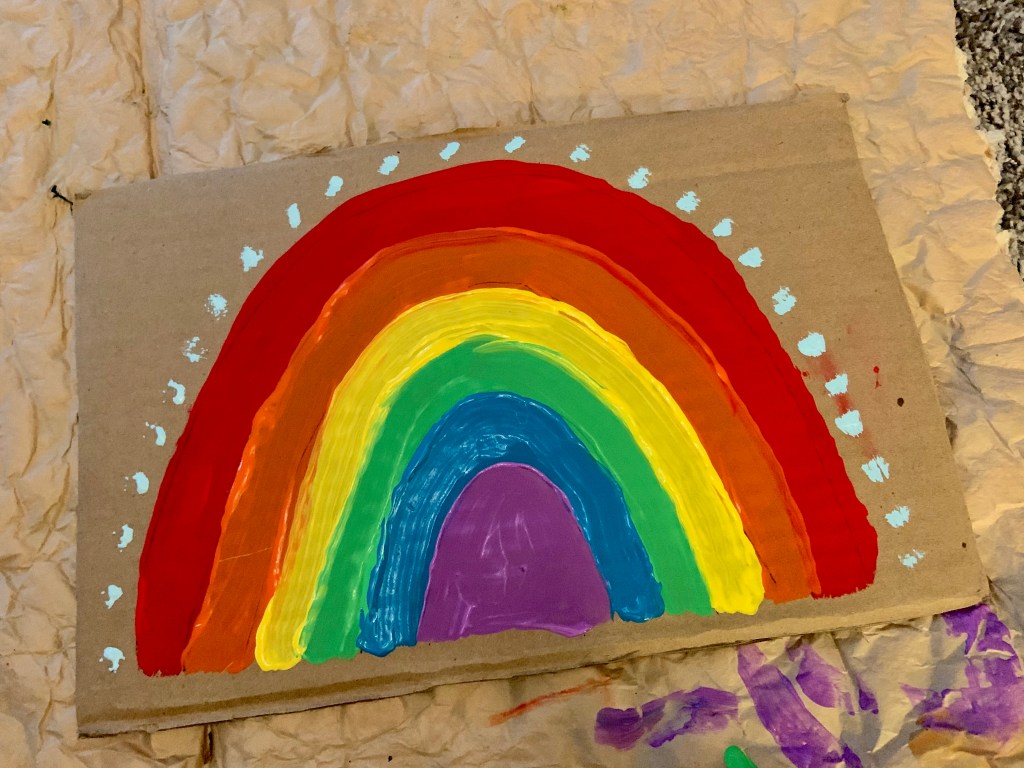 I laid a sheet of parchment paper down on my island. Just so there wasn’t paint everywhere like her Earth Day painting.