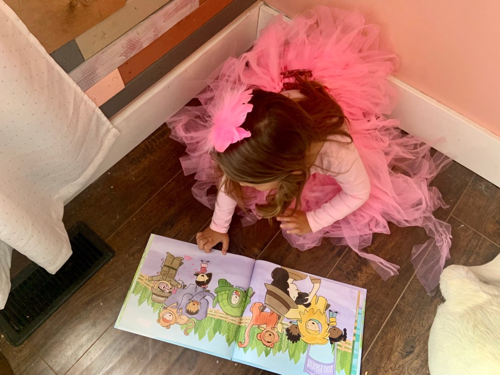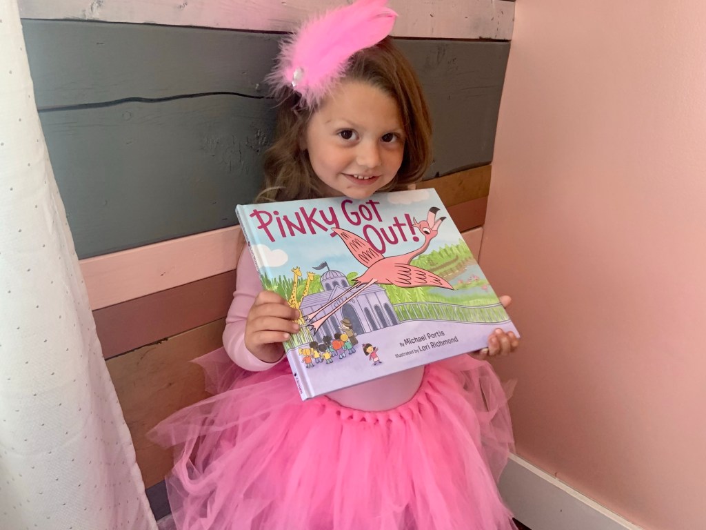 To celebrate all things pink, Mila and I read and interacted with our latest Little Bookish Wardrobe box. Inside was the book Pinky Got Out! by Michael Portis and illustrated by Lori Richmond.