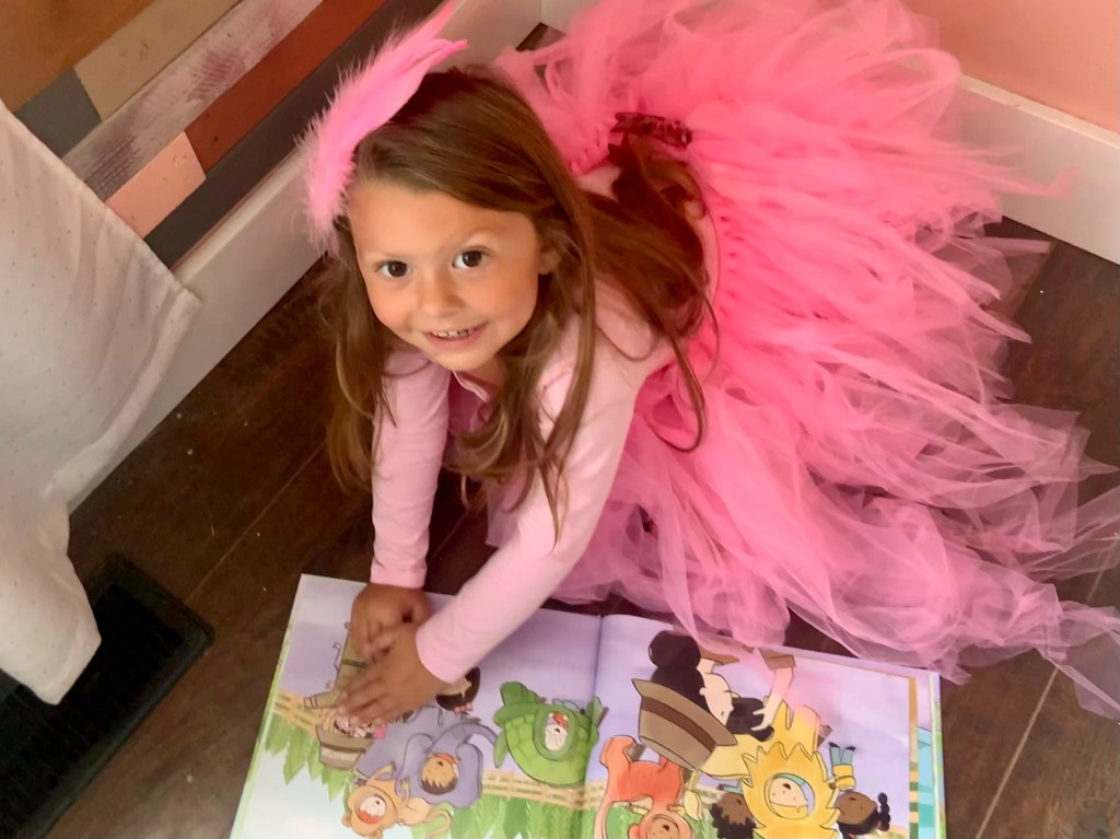 Mila’s favorite part of this story is finding Pinky and laughing at his silly whereabouts.