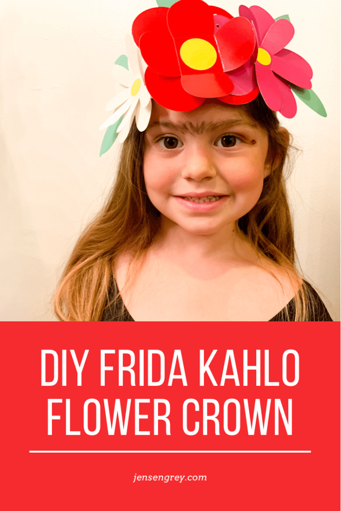 Since we’re in a pretend play kick, I made Mila a Frida inspired flower crown and gave her a unibrow. Here’s all we used to make this iconic crown.